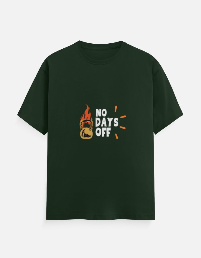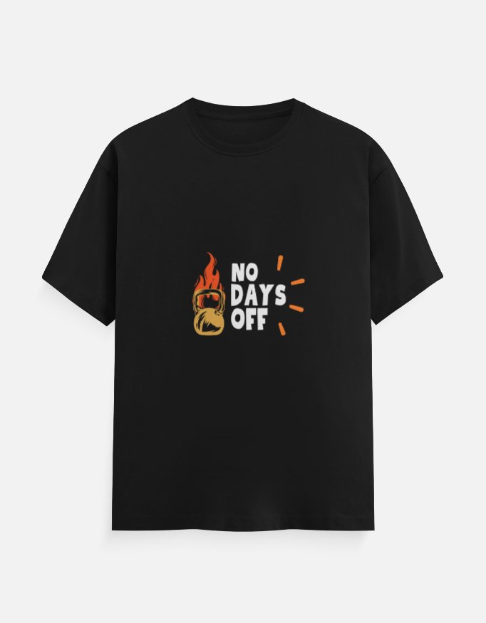 The “No Days Off” T-shirt design represents relentless dedication and a commitment to constant progress. It’s perfect for those who live by the grind, pushing through every workout and challenge without taking a break.