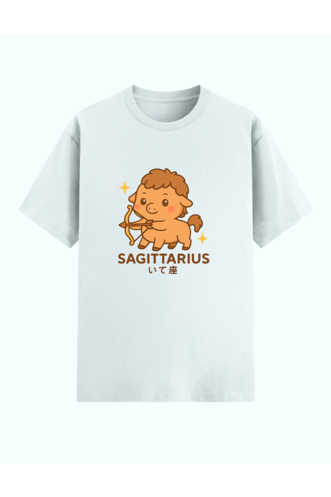 Elevate your everyday style with our Sagittarius Cartoon T-Shirt, featuring an adorable, exclusive illustration of the Sagittarius zodiac sign. This crisp white tee showcases unique text in both English and Japanese for a trendy, global touch—making it the perfect gift for astrology enthusiasts or anyone celebrating a Sagittarius birthday.