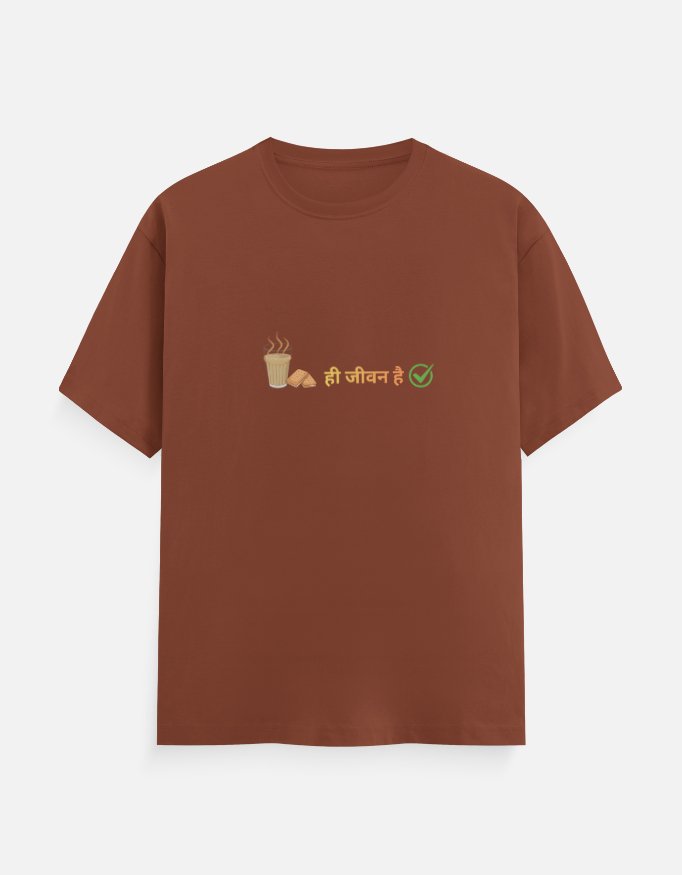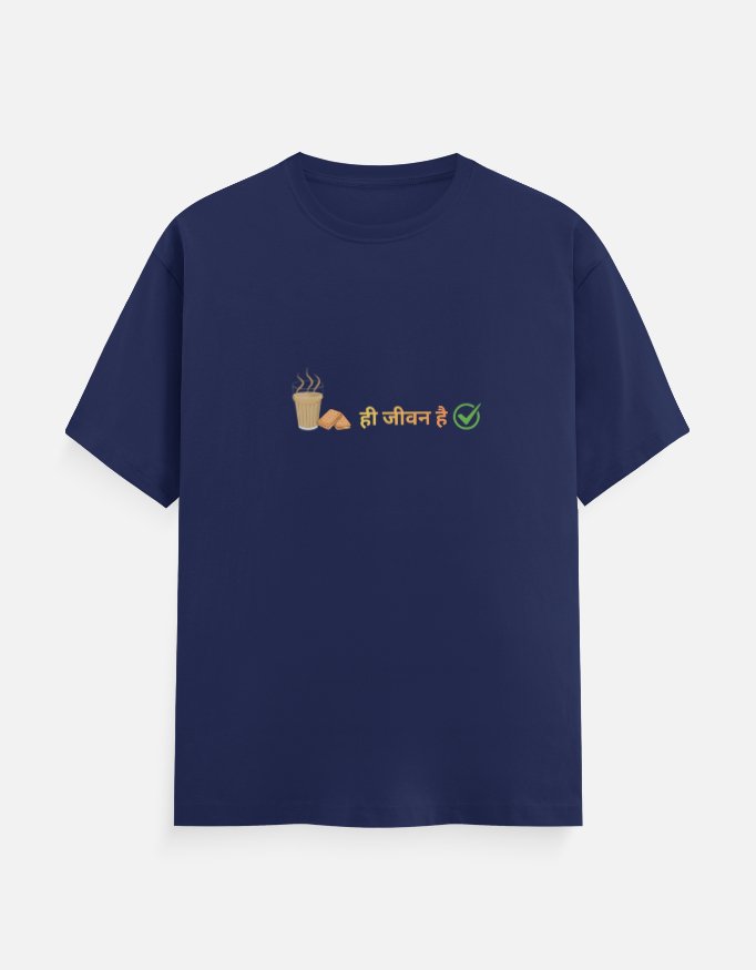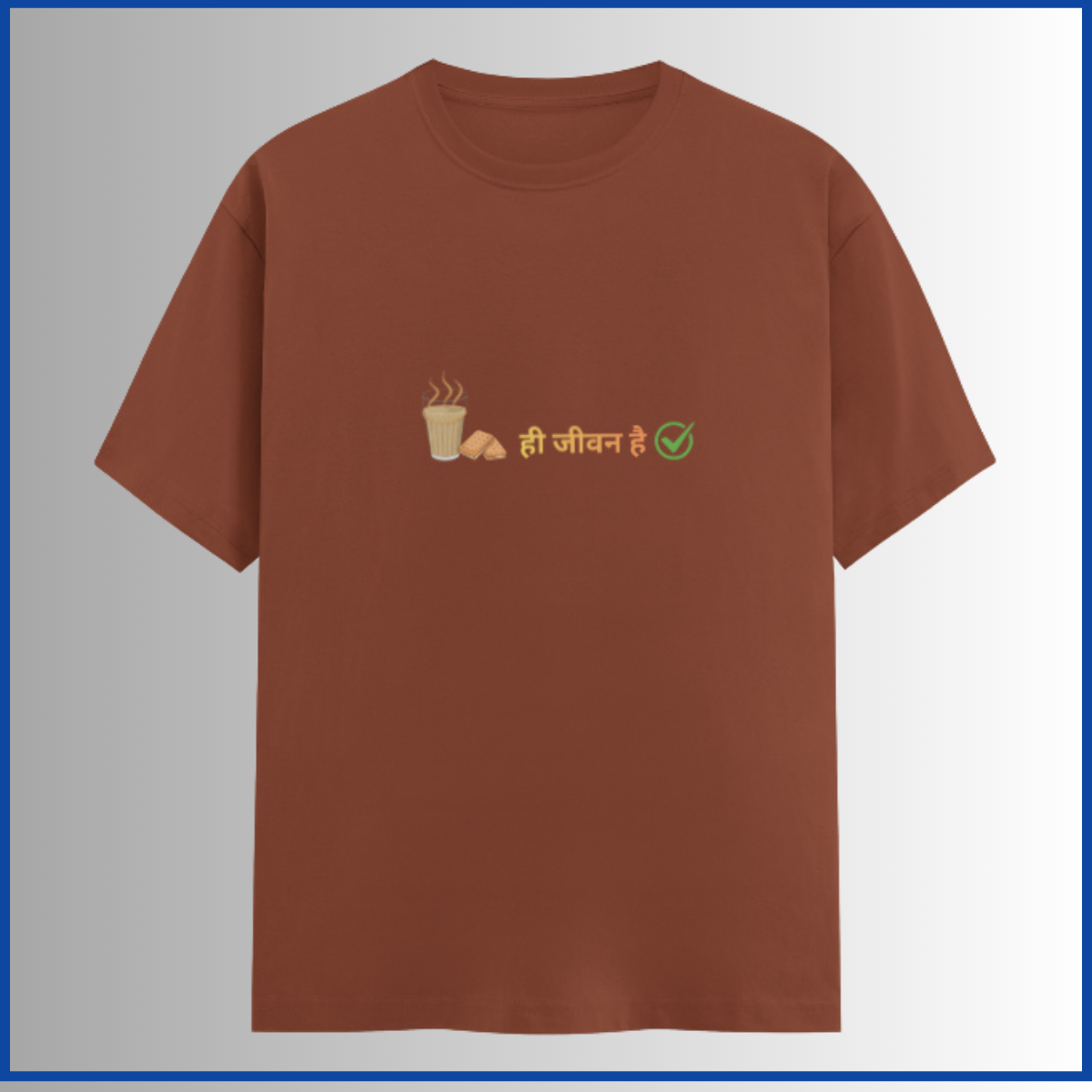 Minimal black tee featuring a quirky chai-and-biscuit graphic with Hindi text that proudly declares “chai hi jeevan hai” vibes. Perfect for tea lovers who treat every cutting chai break as a certified life ritual.